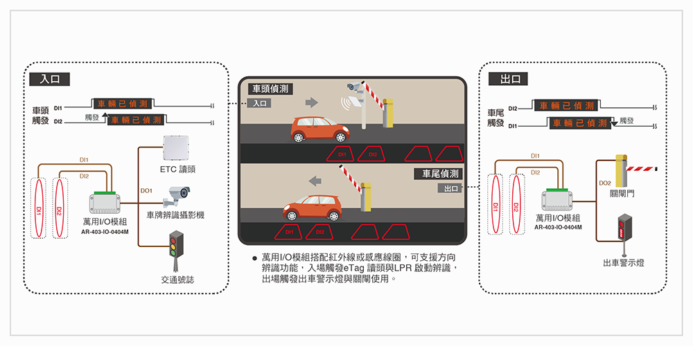 防跟車與反作弊: 系統搭配紅外線感應器或地感線圈,可精準偵測車輛是否確實通過,確保車道管制主機在車輛安全通過後才關閉鐵捲門或柵欄機,並能有效防止外車尾隨進入。