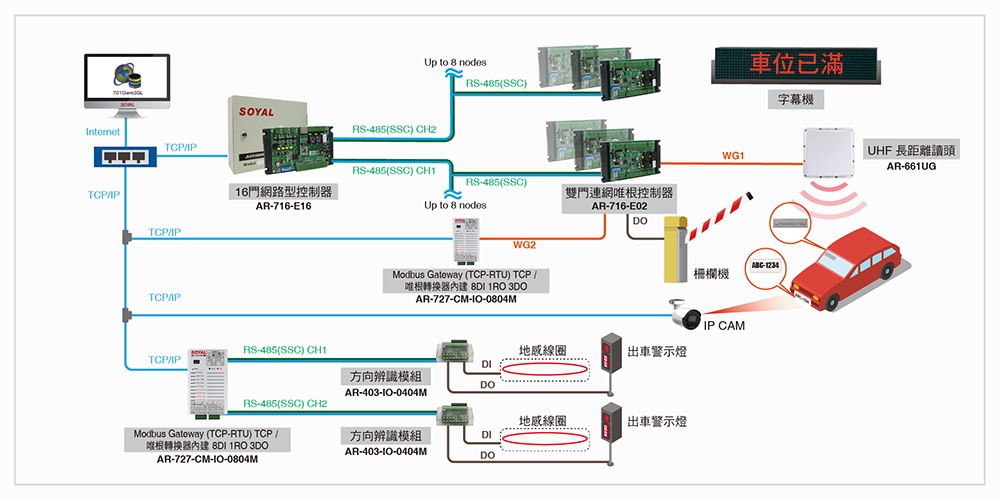 相容性高: E-Tag 系統可輕鬆與既有的道閘機、鐵捲門、伸縮門等開門設備進行整合。